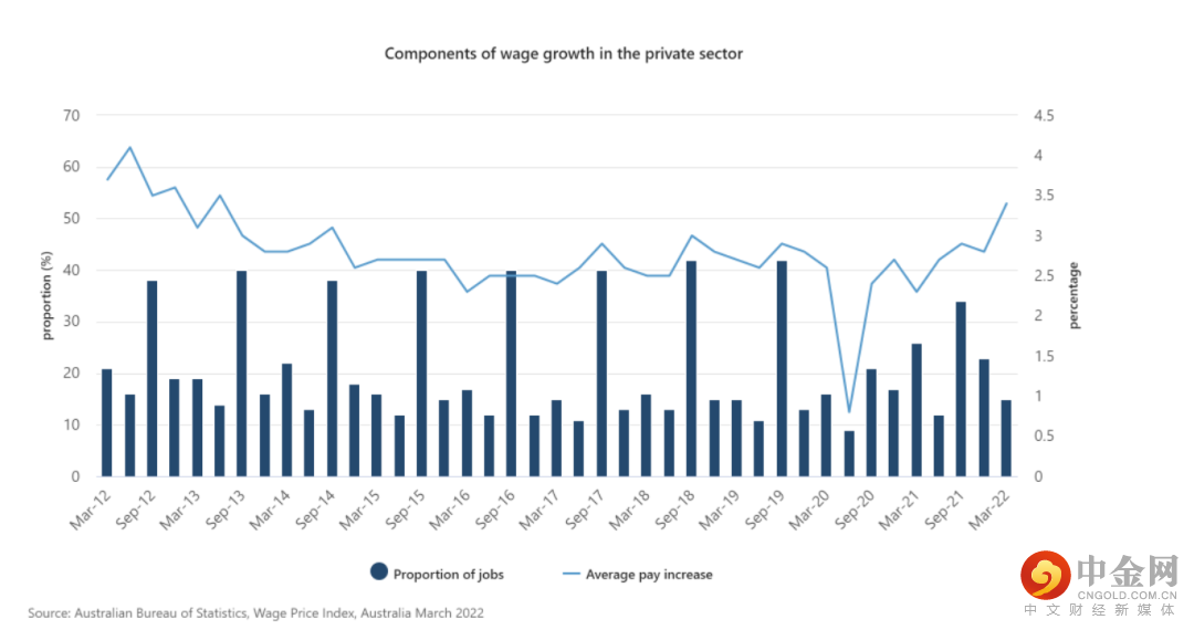 从今日公布的数据可以显示,工资的增长是明显的,即使它跟不上通胀攀升的步伐。澳大利亚统计局价格统计部门负责人Michelle Marquardt在一份声明中表示:“从2020年12月当季1.4%的低点开始,过去5个季度的工资年增长率都在上升。”澳联储加息的条件充分满足,缩短工资与通胀的增幅差距需通过更大幅度的加息,预计年内将多次加息将现金利率提高至1%以上。