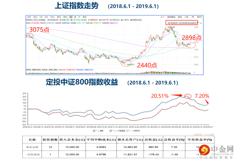 截至5月18日收盘,大盘点位是3093点,与2018年6月1日大盘点位3075点基本相当,我们就以3075点作为定投的起点,取往后一年的定投数据。