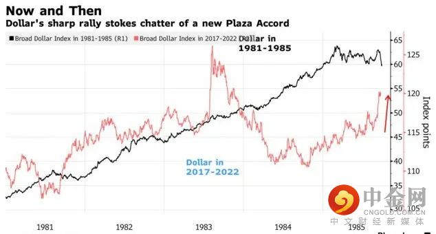 现在的美元强势当然与1985年有相似之处:美联储贸易加权美元指数今年迄今的年化增幅为14%,高于协议达成前5年12%的增幅。