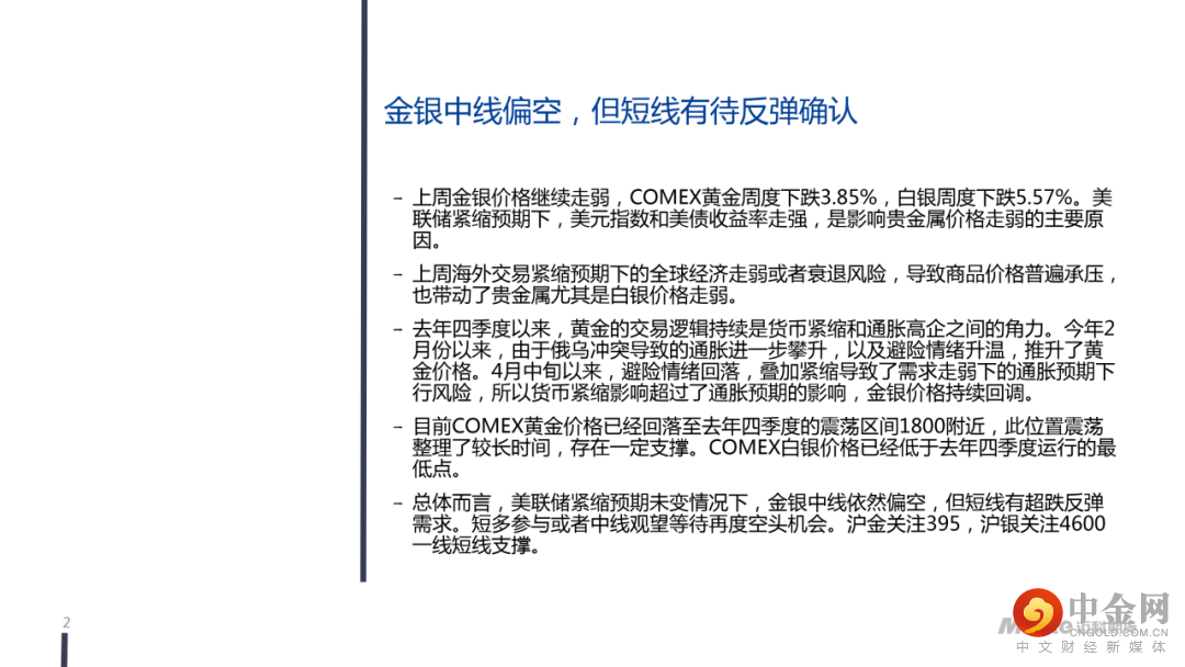 迈科贵金属周报-中线偏空,短线有待反弹确认丨2022.05.16