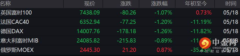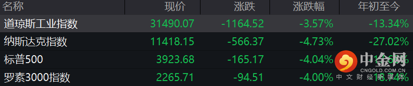 纳指重挫4.73%,道指、标普创近两年来最大单日跌幅;消费零售股暴跌,塔吉特跌24.93%,沃尔玛6.79%;科技股大幅收跌,亚马逊跌超7%,特斯拉跌超6%,苹果跌超5%。