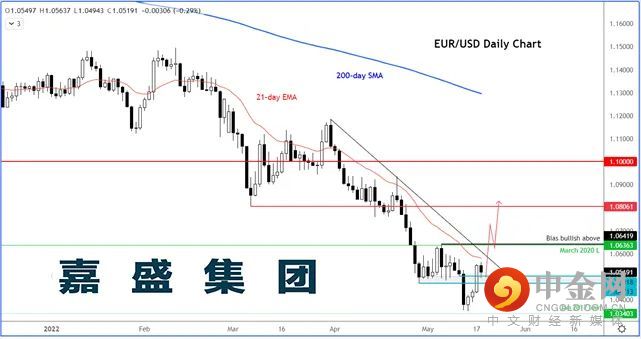 欧洲央行执委会成员Klaas Knot在周一表示,欧洲央行应当在7月加息25个基点,但如果数据显示通胀正在上升,不应排除加息50个基点的可能性。我们认为加息50个基点的可能性不大,但Knot的言论表明欧洲央行决意开始打击通胀。市场似乎认可央行年内加息105个基点左右的前景,欧元当天受到激励上涨。