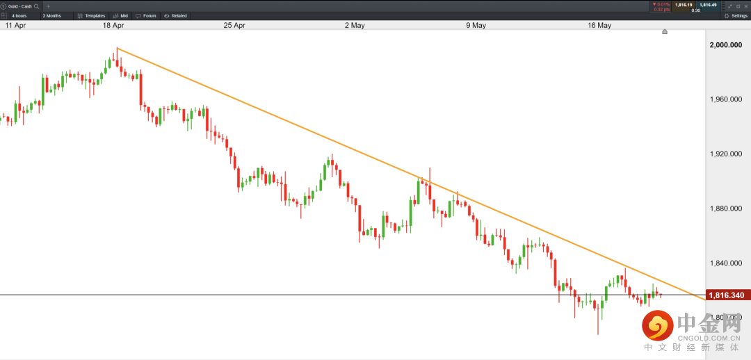 黄金只有在突破这两个价格才有短期筑底反弹的可能性。