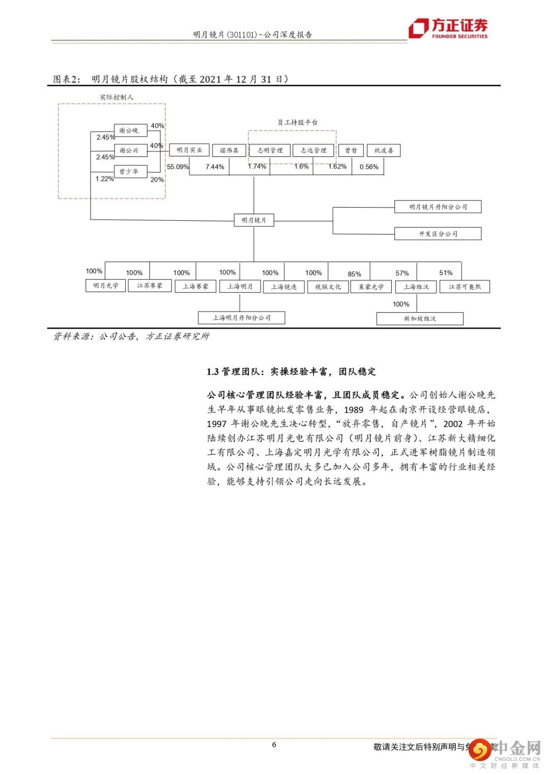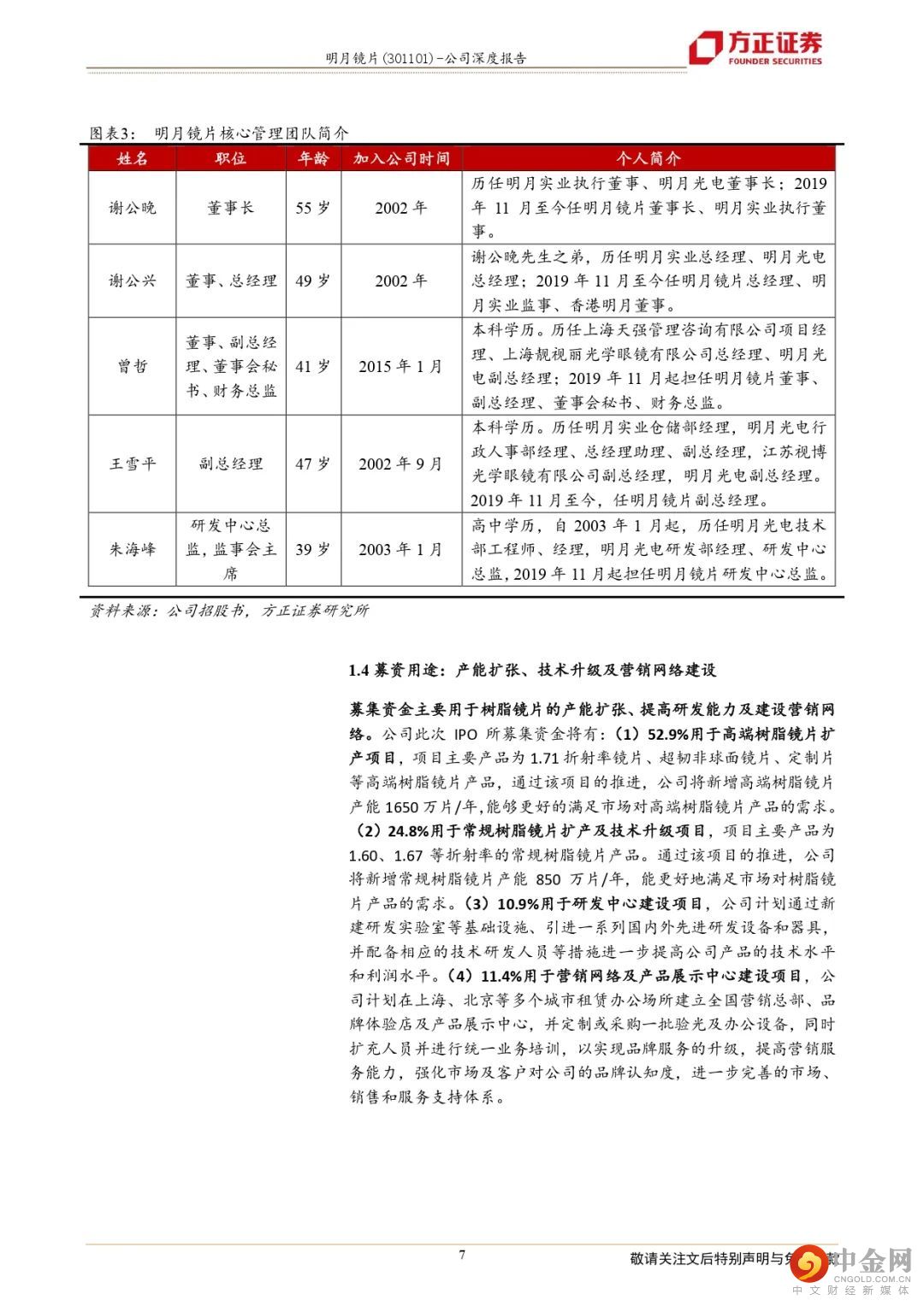 明月是国产镜片行业龙头。公司专注眼镜镜片20年,具备完善的产业链及一站式服务能力。公司实控人持股超60%,员工持股平台占3.3%。核心管理层实操经验丰富,且团队稳定。IPO募资主要用于产能扩张、技术升级及营销网络建设。