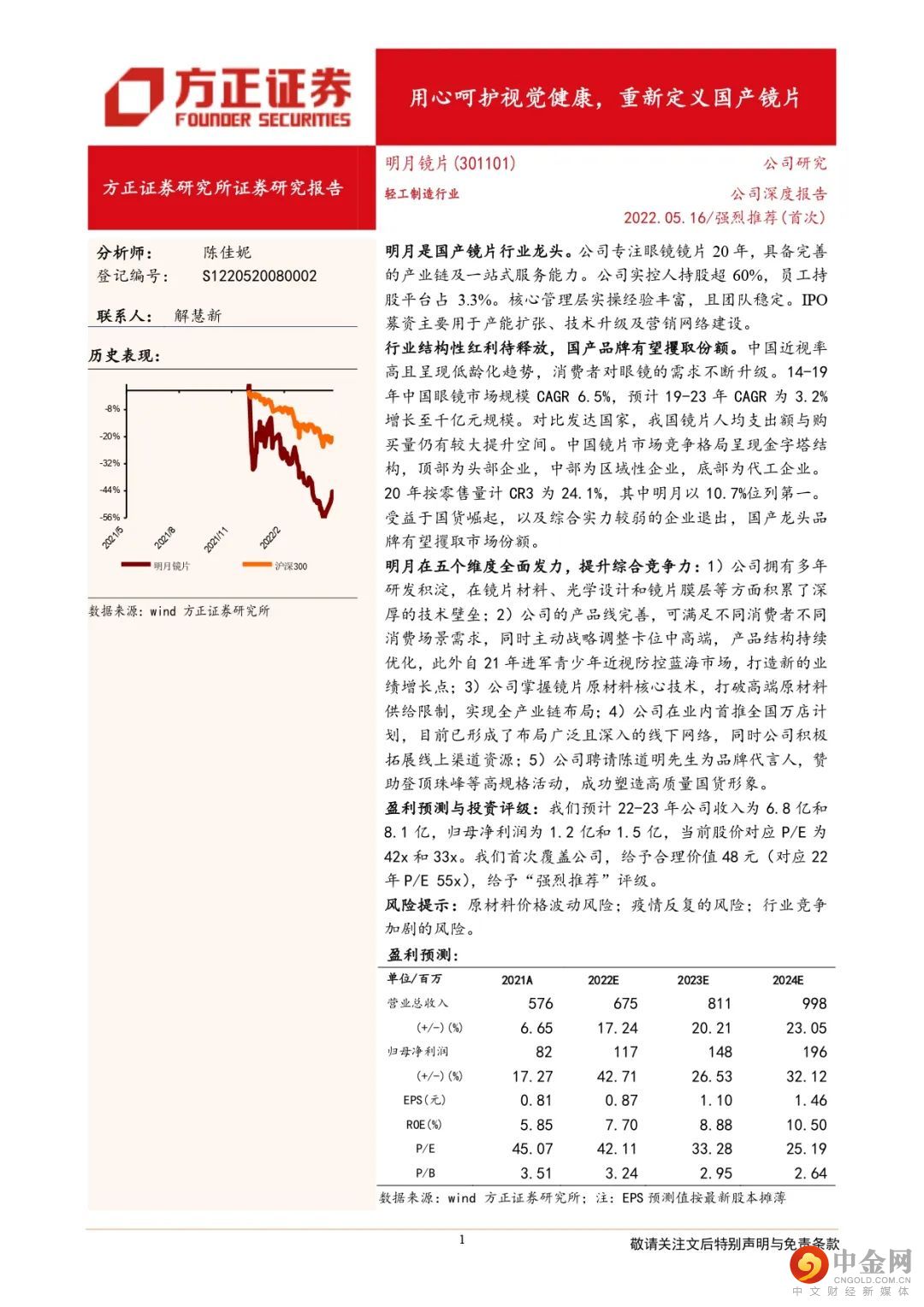本文来自方正证券研究所于2022年5月16日发布的报告《明月镜片:用心呵护视觉健康,重新定义国产镜片》。