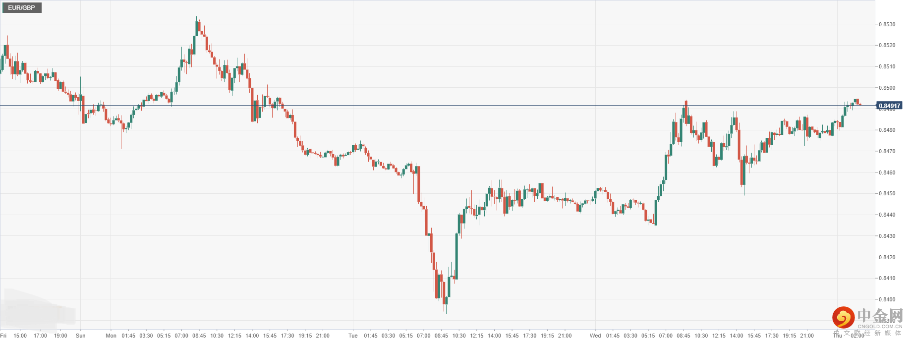 欧元兑英镑周三收盘大幅冲高后,今日开盘涨至0.8491,由于欧元区国家通胀相比其他国家稳定,使得欧元上行支撑,英镑则下行承压。