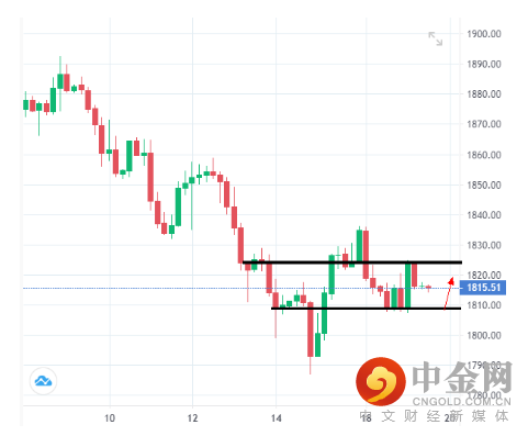 注意再度回到1810附近的支撑后,回弹至1823阻力,单手交易将有机会赚1300美元的盈利空间。