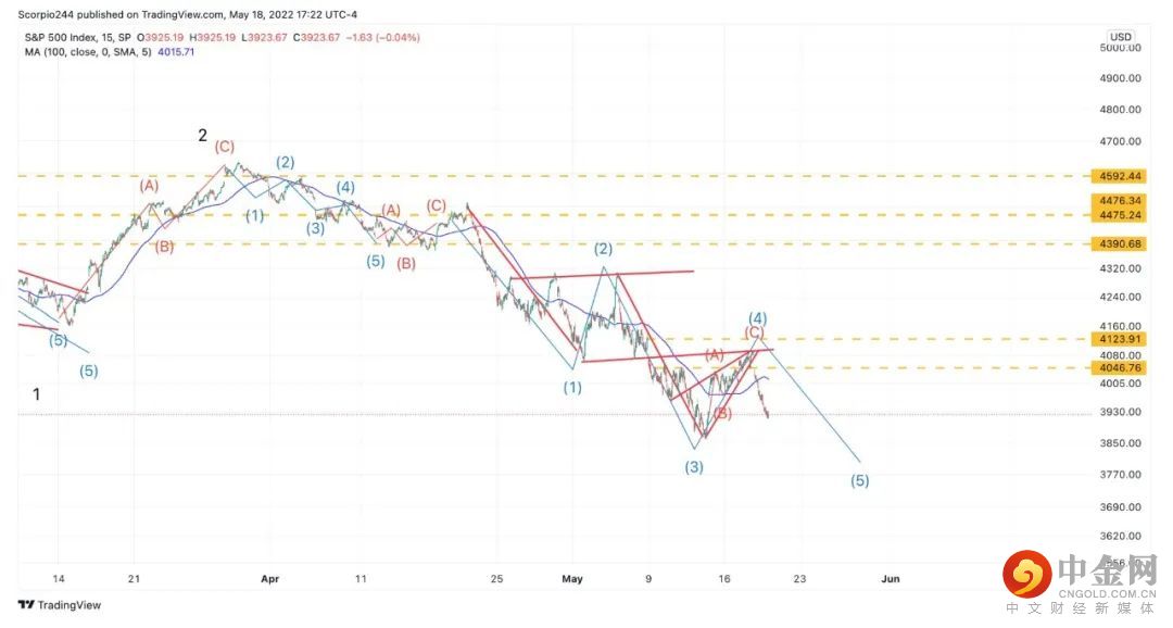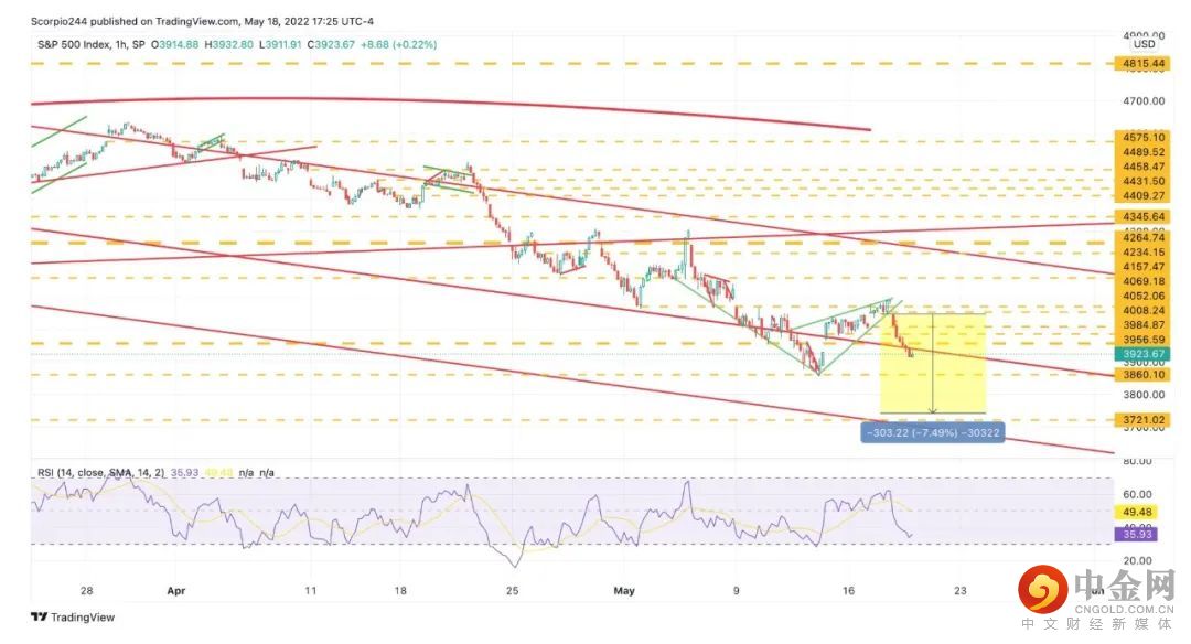 标普500指数在5月18日暴跌逾4%,跌至3923点重返4000点关口下方。