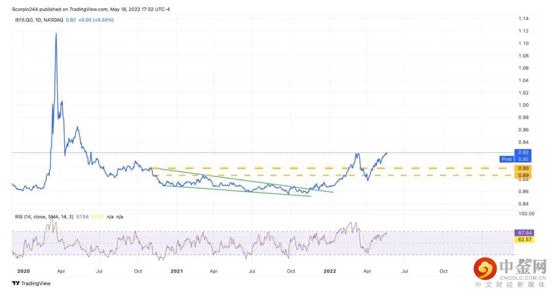 金融状况仍在继续紧缩,如果收缩持续下去,股市将付出代价。iShares 7-10年期美国国债ETF/ iShares iBoxx投资级公司债ETF是我能想到的跟踪白天金融状况的最简单的办法。
