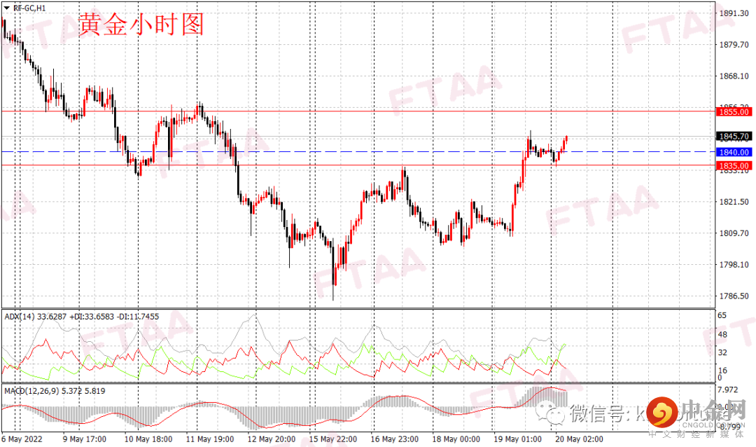 黄金期货周四大幅反弹,最低1808.55,最高1847.80,日图收出长阳线,显示多头大幅发力,日图级别或延续反弹。小时图看,昨日亚盘震荡调整,但欧盘时段欧股下跌提振避险情绪,金价拉涨,美盘盘前美国初请失业救济数据不佳,继续提振金价。当前MACD指标红盘运行,同时ADX指标处在高位,短线或维持多头强势。今早亚盘金价稍作震荡,当前上行,操作上可持有多单,或逢低在1840附近轻仓多,止损1835,目标1855。