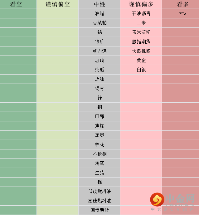 注:上图所有品种观点为主力合约的短期观点,具体以官网报告为准