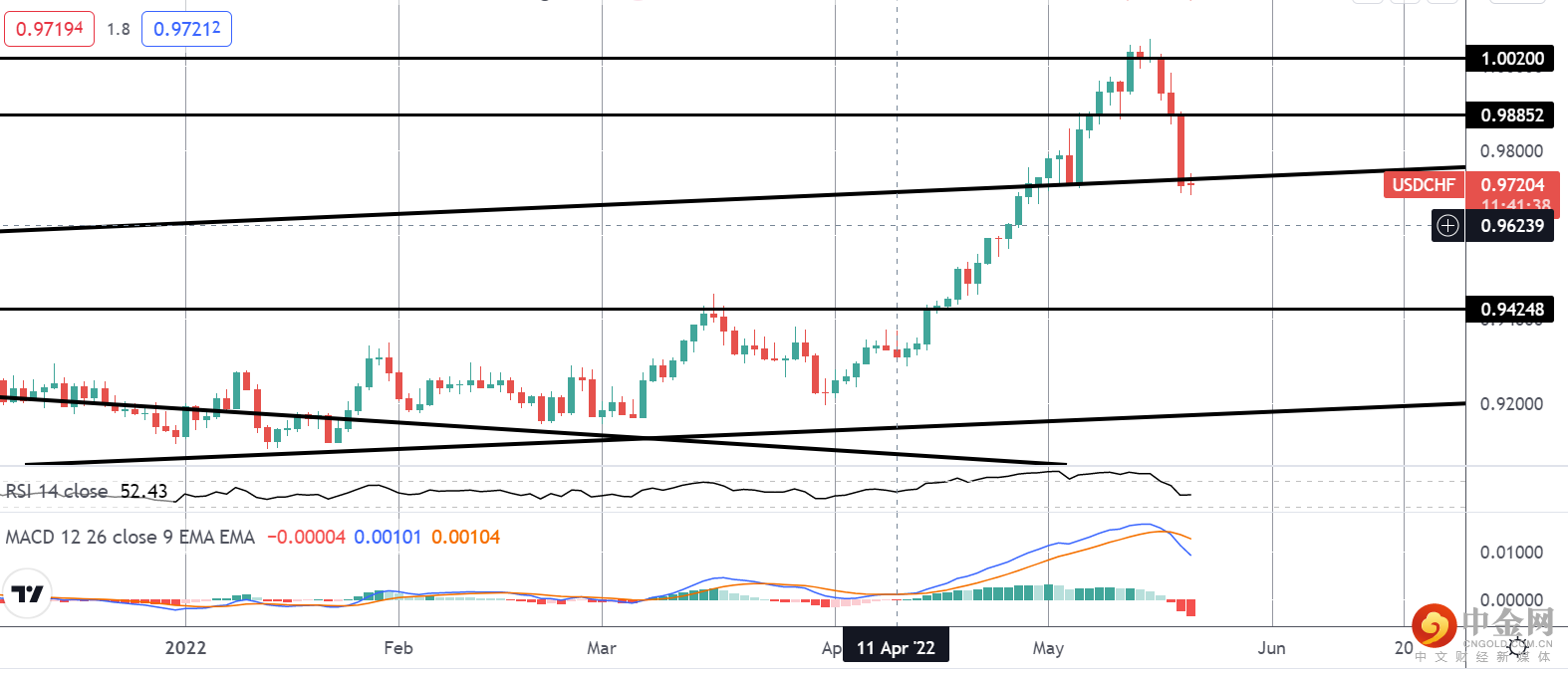 这个故事有两个部分,第一个是美元疲软,第二个是瑞士法郎走强。在美元方面,这是有趣的一周。我们在周中听到美联储主席鲍威尔的消息,他似乎在让市场等待美联储采取更积极的行动。鲍威尔警告称,美联储将继续加息,直到通胀得到控制,如有必要,美联储愿意将利率提高至中性以上。这些评论是在鲍威尔也为超过 0.5% 的加息打开大门之后一周发表的,再次解释说美联储愿意采取任何必要的措施来对抗通胀。