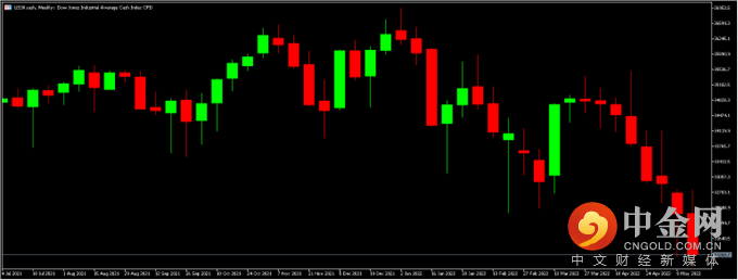 澳大利亚东岸时间5月20日(周五),美国股市在反弹失败后继续下跌,其中道琼斯平均工业指数下跌236.94点(-0.75%),即将面临8周连跌。纳斯达克指数下跌29.66点(-0.26%)、标普500指数(SPX500)下跌22.89点(-0.58%)。