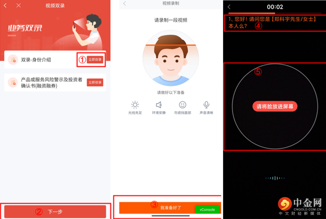 双录过程中您需保持面部一直完整展示在视频录制区域框中,并通过语音回答双录问题。