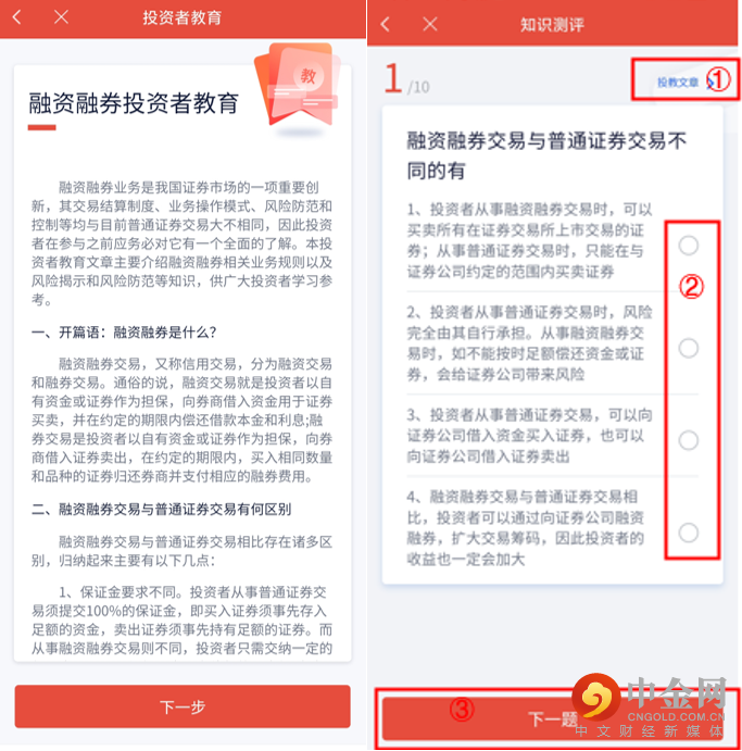请您仔细阅读融资融券投资者教育内容,并进入知识测评环节。