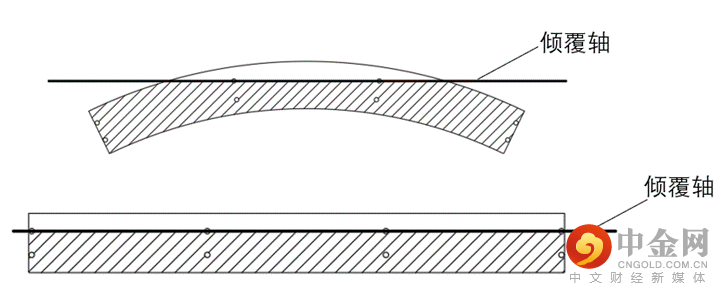今天要讨论的是和一个朋友聊天时提到的问题:曲线桥梁的抗倾覆性能是否优于直桥?讨论这个问题的前提是仅曲率半径不同,截面、支座、跨径等都相同。对于中墩单支点的情况,回答这个问题是比较复杂的,这里只讨论双支点的情况,我们先定性地分析一下这个问题,从下面图中可以看出,弯桥的稳定力矩(图中阴影区域自重乘以其形心到倾覆轴的距离)明显大于直桥。