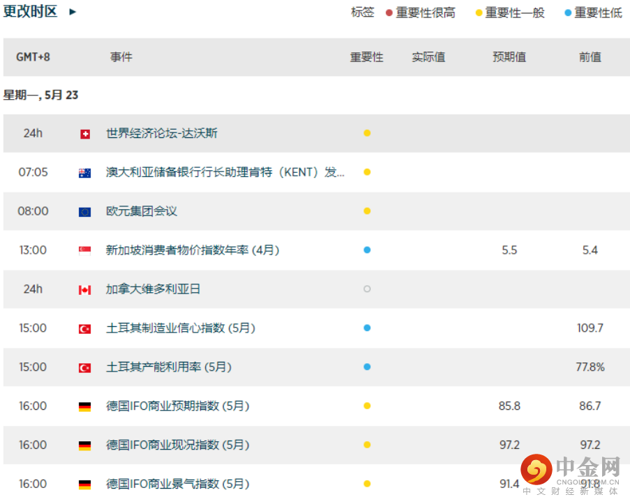 今日经济日历(标准时间+8小时)