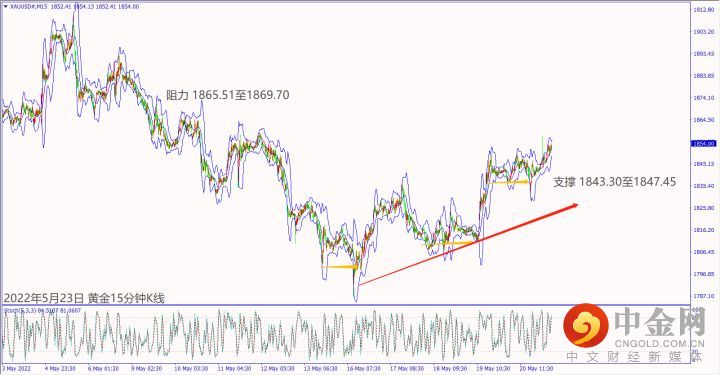 今天(23日)美国总统拜登前往日本拜访,一旦传出印度太平洋经济框架利好有望带动日元上涨,美日冲不过小时布林带中轨127.58,建议可偏空操作。预期今天德国公布经济数据不佳,欧美冲不过小时布林带上轨线1.0590,建议可短空操作。今天澳州联储助理主席称进入量化紧缩暗示陆续加息,澳美守住小时布林带中轨0.7058,建议可偏多操作。