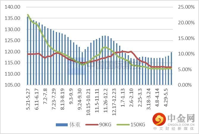 上周全国出栏平均体重119.68公斤,较前一周涨1.35%,150公斤以上出栏占比5.26%,降0.11%;90公斤以下占比5.74%,涨0.06%。夏季天热,市场对于肥猪接受能力进一步下降,集团场主要供应标猪为主,但近期高价导致散户方面压栏惜售情绪增强,散户存栏大猪增加。标肥价差持续走强,上周增加0.22元/公斤,华南西南地区较喜欢肥猪,价差为负。近期二次育肥又有兴起,主要抓100公斤以下中大猪养,到130公斤左右卖,夏季猪增重稍慢,对短期猪肉供应冲击有限。