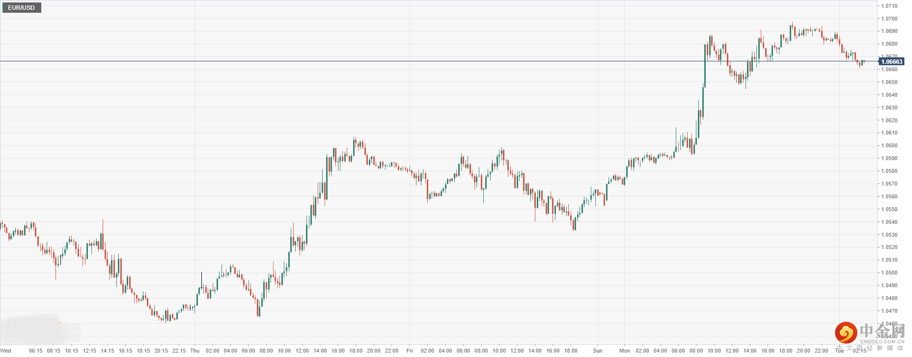 欧元兑美元周一收盘大幅冲高后,今日开盘涨至1.0666,由于德国5月商业指数利好,伴随美元下滑,使得欧元上行支撑。