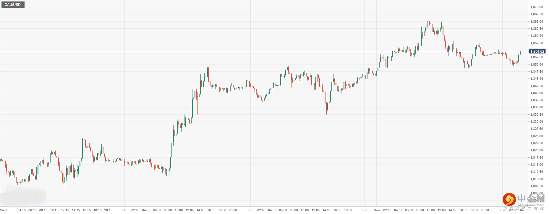 § 贵金属方面:黄金兑美元上升至1854.62。