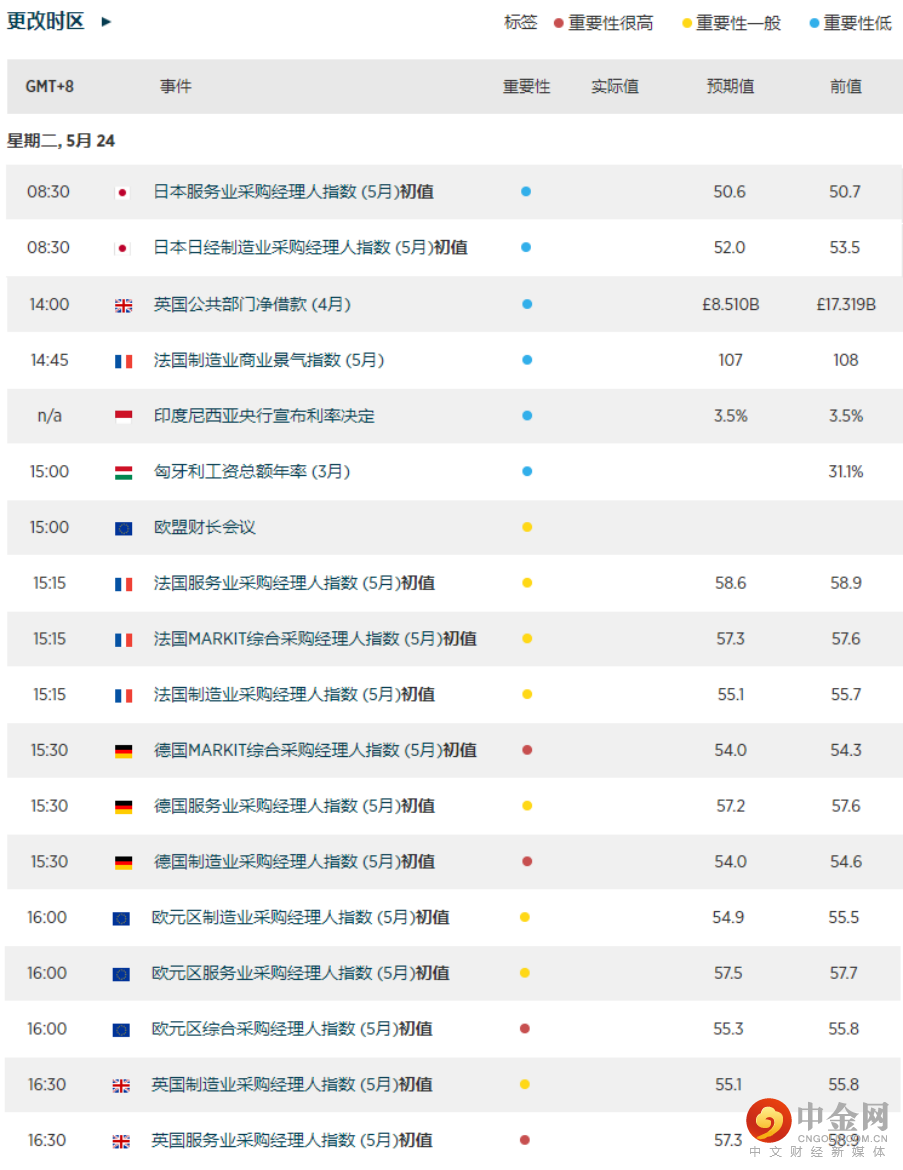 今日经济日历(标准时间+8小时)