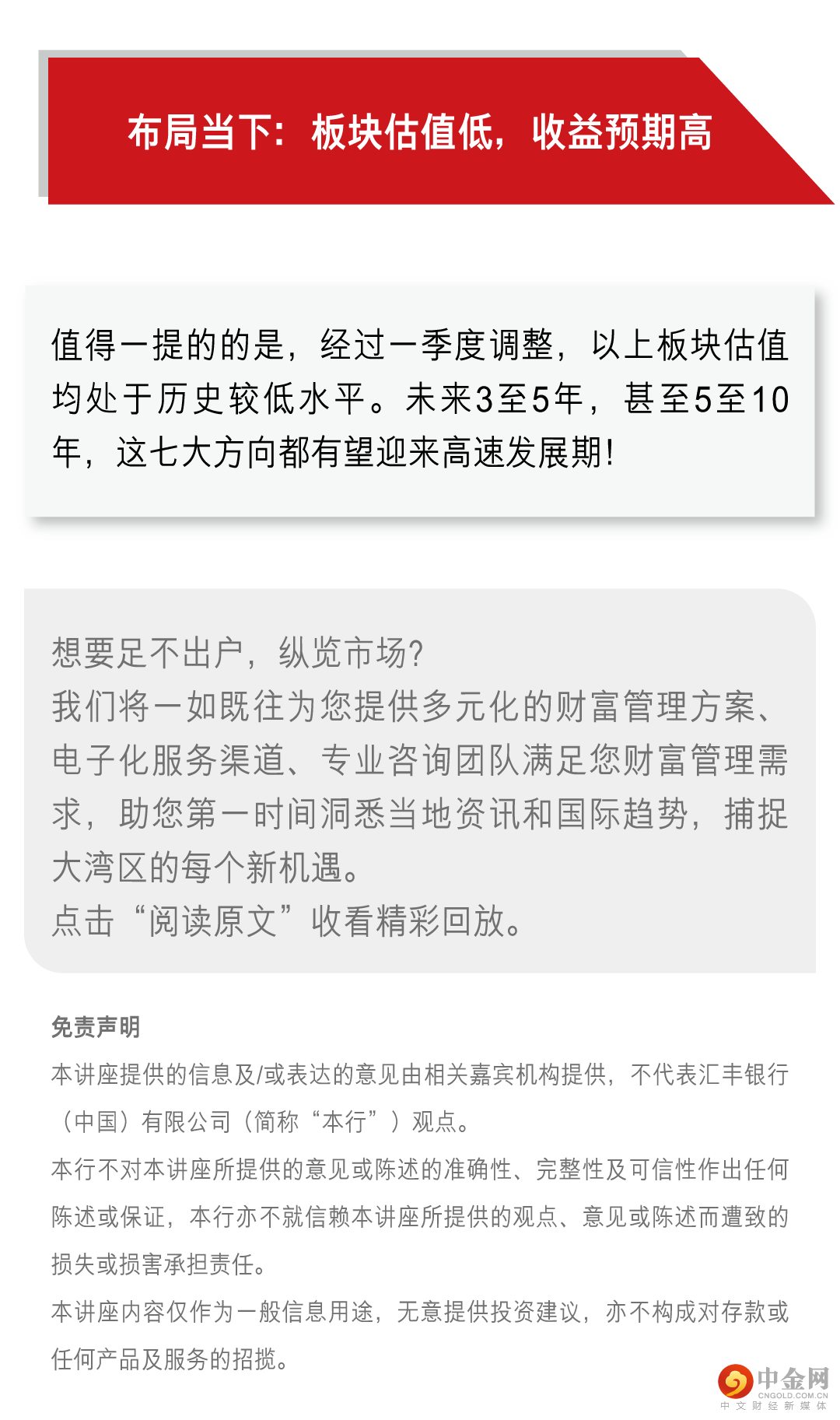 | 汇丰微信公众号“汇丰中国”供中国大陆地区使用。本公众号内提供的产品及信息供位于中国大陆地区的客户访问。本公众号由汇丰银行(中国)有限公司(“汇丰中国”)提供。汇丰银行(中国)有限公司由中国银行保险监督管理委员会、中国人民银行、国家外汇管理局等监管机构监督并管理。如果您身在中国大陆地区以外的其他国家或地区,本行不能保证能根据您所身处或居住的国家或地区的相关法律法规而向您提供本公众号下的相关产品和服务。本公众号上提供的资料无意被任何人传递至或使用于相关法律法规限制或禁止传播或使用该等资料的任何国家或地区,也无意供该等国家或地区的人们使用。请注意,本文下方标注“相关阅读”的部分是腾讯微信的系统自动推荐内容,而非汇丰中国推荐的内容。由于“相关阅读”是微信对于公众号默认设置的自动随机推荐其他内容的功能,且该功能无法关闭,汇丰中国在此声明,“相关阅读”的内容非汇丰中国转发,且汇丰中国不对其内容作任何推荐、保证或背书,请阅读者自行判断是否要打开阅读其中内容,并请谨慎鉴别其内容的真实性和可靠性。 |