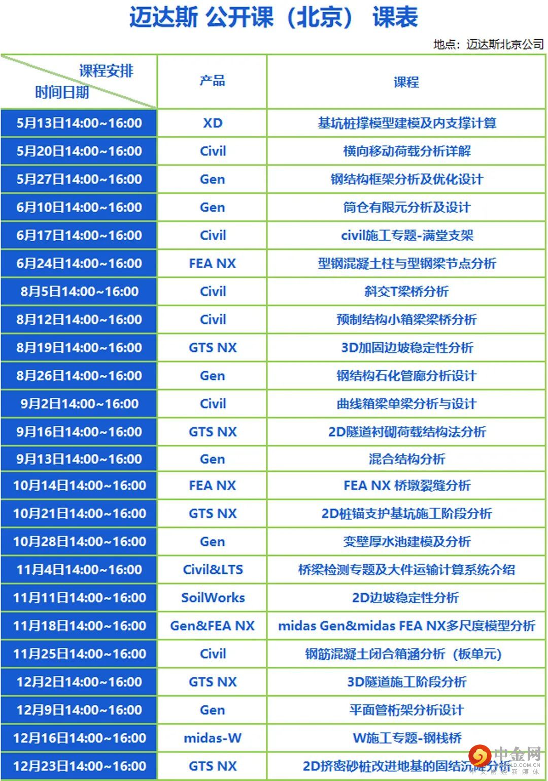 届时,迈达斯官网和公众号会提前预告课程及时间,想报名参加的工程师欢迎联系我们,本课程需要自备电脑,欢迎一起学习交流!