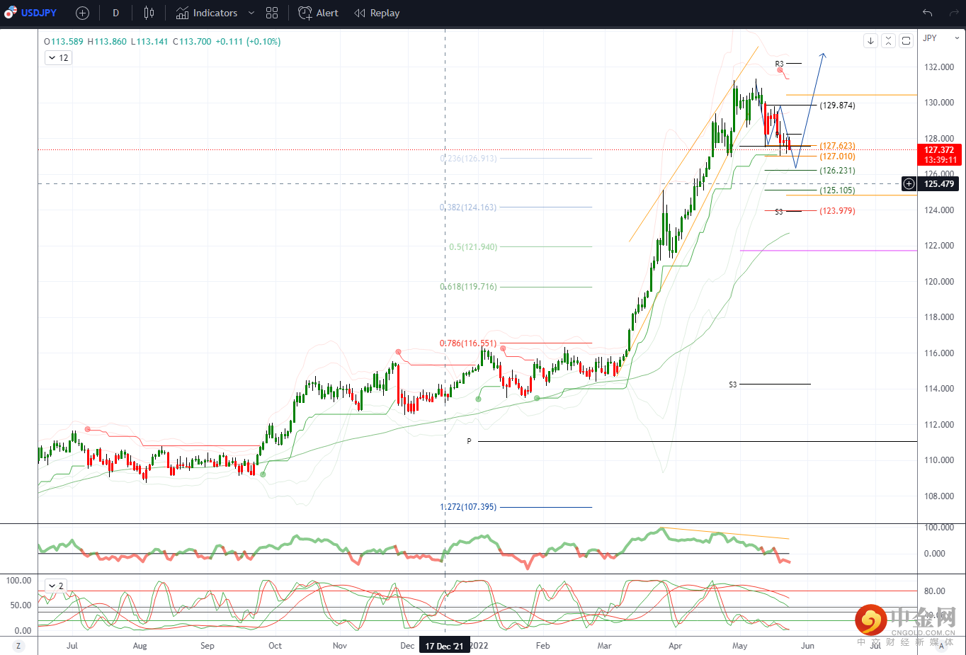 USDJPY 日内偏差:127上方看涨,下方看跌