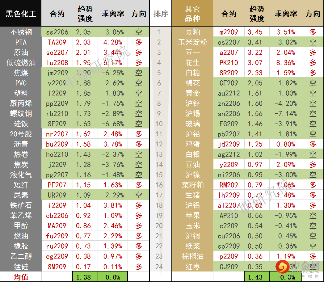 中期商品趋势榜 | 豆粕多头动能偏强(0523)