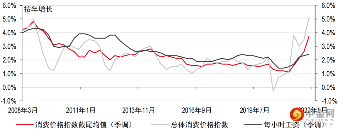 澳大利亚储备银行变得更加鹰派,在5月3日的会议上将现金利率上调25个基点至0.35%。这是对第一季通胀急剧上升的反应(见下图中的红线和灰线)。会议纪要(5月17日公布)指出:“考虑到委员会每月召开一次会议,委员会有机会在相对较短的时间内根据更多信息评估利率的设定。”这表明,如果有数据支持的话,存在加速加息的空间。