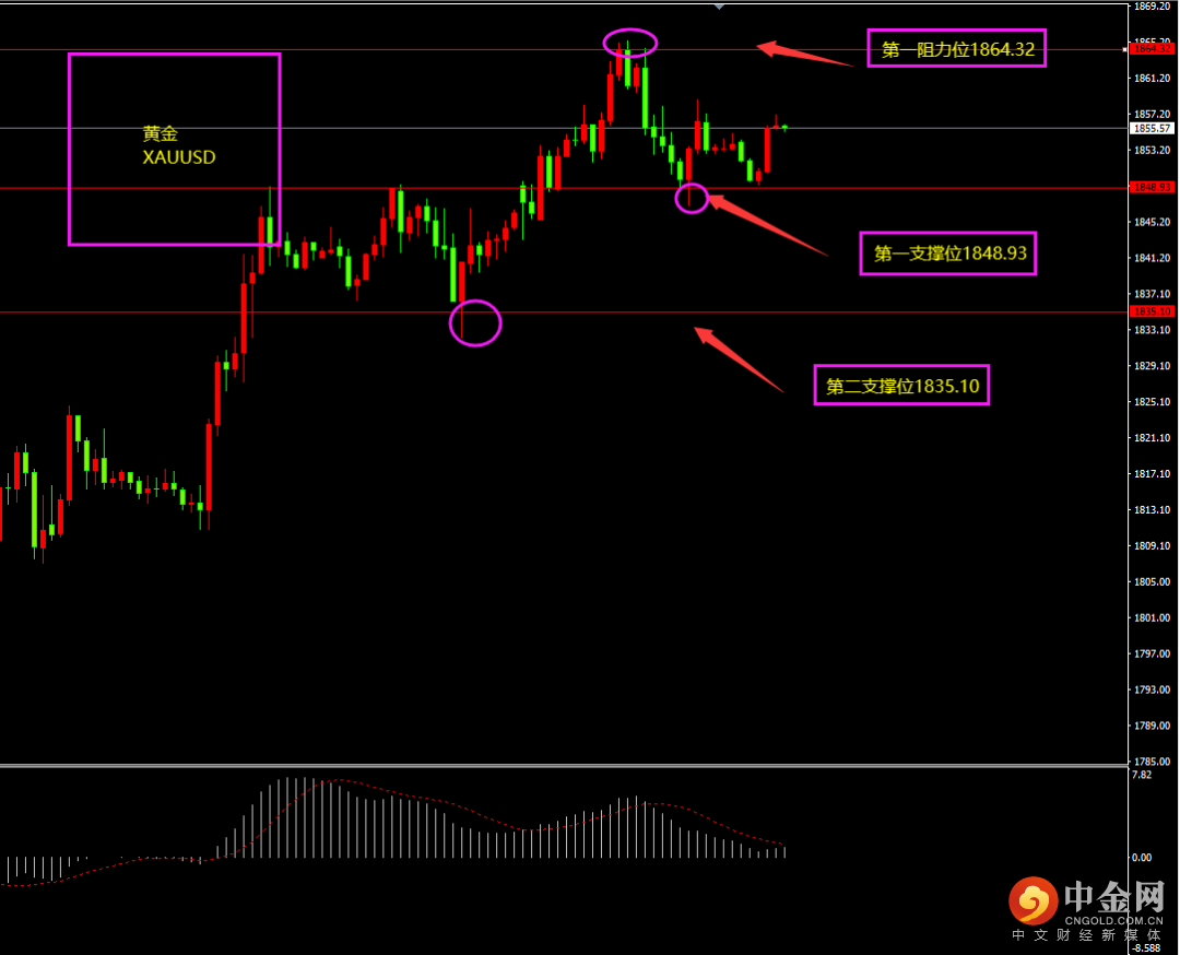 第一、二支撑位附近轻仓看多,第一阻力位附近轻仓看空。