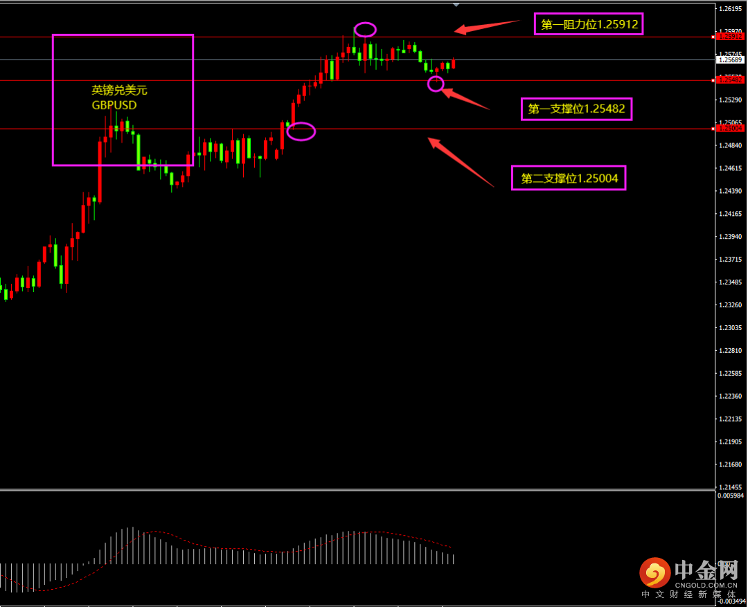 天图英镑收阳线,价格有所冲高,多头继续上攻,短期MACD逐渐上移,空头大幅减弱,短期接近大阴线开盘价,阻力仍在,日内更多以震荡带有一丝上行为主?小时图英镑期间连续阳线拉升,MACD位于0轴之上,多头占优,短期虽有连续阴线回落,但力度不强,日内继续以逢低看多为主?
