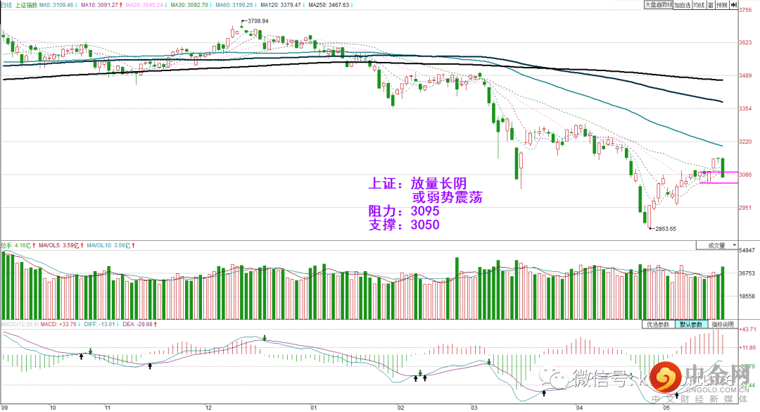 周一市场均收放量下影小K,属于滞涨情形,同时小级别指标背离,今日大概率震荡调整。实际开盘后直接震荡走低,板块个股全面回落。收盘沪指跌破3100点整数关。今日市场均收放量中阴,接下来或考验20日线支撑,短线或维持弱势震荡。操作上可继续谨慎或控仓为主。