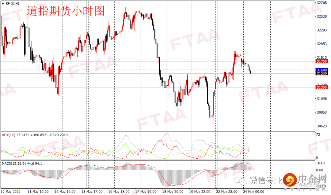 周一美股三大指数集体反弹,道指涨618点或1.98%。美国总统拜登周一在东京表示,他正在考虑取消对中国的一些关税壁垒,消息面偏暖,道指高开震荡走高,日图收出中阳线,显示短期多头发力,当前指数站上5日线和10日线,短线或仍有上行动力。道指期货方面,昨日亚欧盘震荡,美盘早盘大幅拉升。今早亚盘受亚太股市拖累,道指期货低开走低,短线或延续调整。操作上可平出多单,转为观望,或逢高在31600附近轻仓空,止损31750,目标31300。