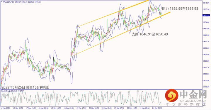 昨天(24日)受到美元指数大跌影响,市场买盘推升黄金价格从低点上涨约20美元冲上1860关口。预期周四(26日)清晨美联储货币会议纪要重申加快加息利好美元上涨,黄金价格一旦跌破小时布林带下轨线1860美元,建议可短空操作。