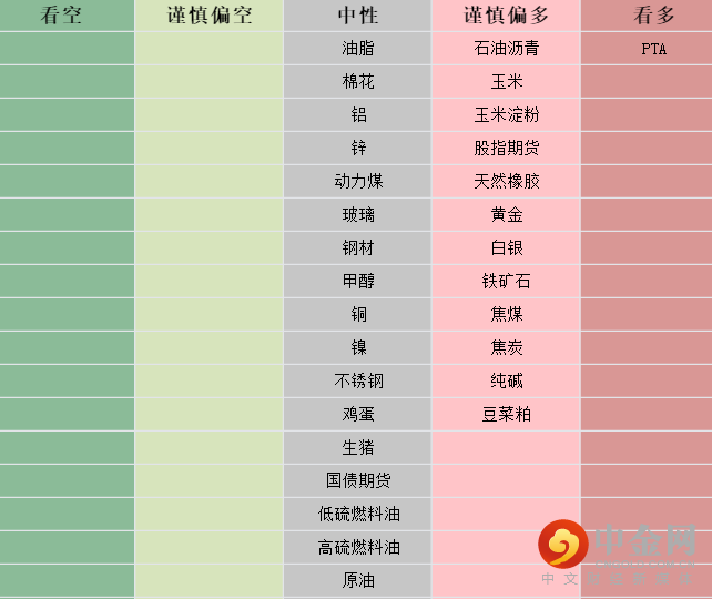 注:上图所有品种观点为主力合约的短期观点,具体以官网报告为准