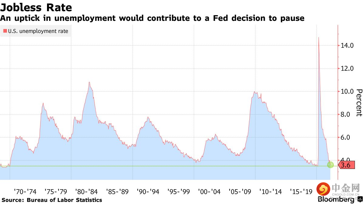 美联储官员曾表示,他们不会对失业率从接近50年低点的3.6%小幅上升感到不安。然而,值得注意的是,由于货币政策的运作具有滞后性,美联储可能会选择在前景尚不完整的情况下暂停加息。
