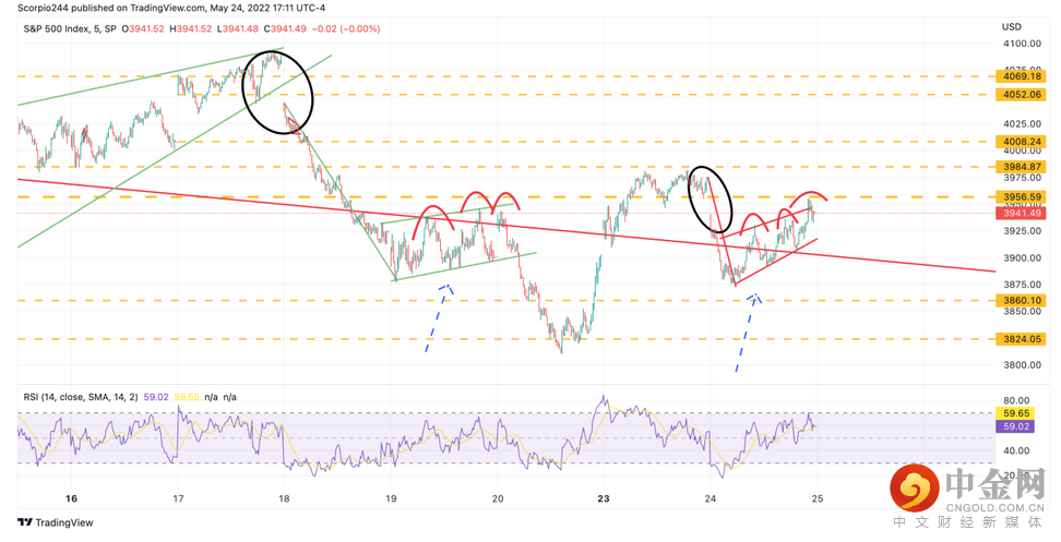 Snap公司公布了极其糟糕的营收意外消息后,股市随之出现波动,然后更糟糕的数据出现,新屋销售数据远低于分析师们的预期。股市在5月24日的大部分时间里处于下跌中,欧洲股市收盘后美股指数在11:30开始反弹,收盘下跌了81点。