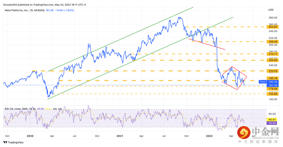 Facebook公司的股票今天跌出了钻石形态,这可能意味着该公司股票面临着更大的下行空间。