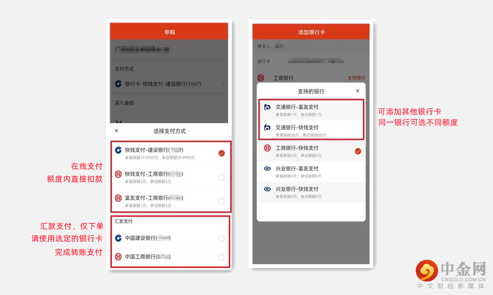 多种支付方式互为补充,满足各种投资金额需求。线上扣款满足小额投资,在线支付单笔额度最高20万。更高金额的大额申购可通过线上下单+线下汇款转账实现,支持多笔汇款,金额不限。