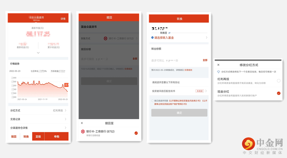 自助管理基金份额,支持基金转换和修改基金分红方式。