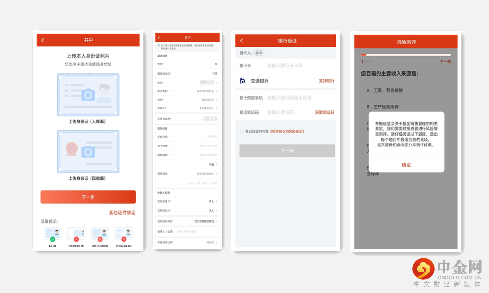 支持7*24小时线上实时开户。多个开户入口,流程操作方便快捷。可即刻完成身份验证、资料补充、银行验证、风险测评的开户环节,告别繁琐的证件重传和审核等待,开户成功即可购买。