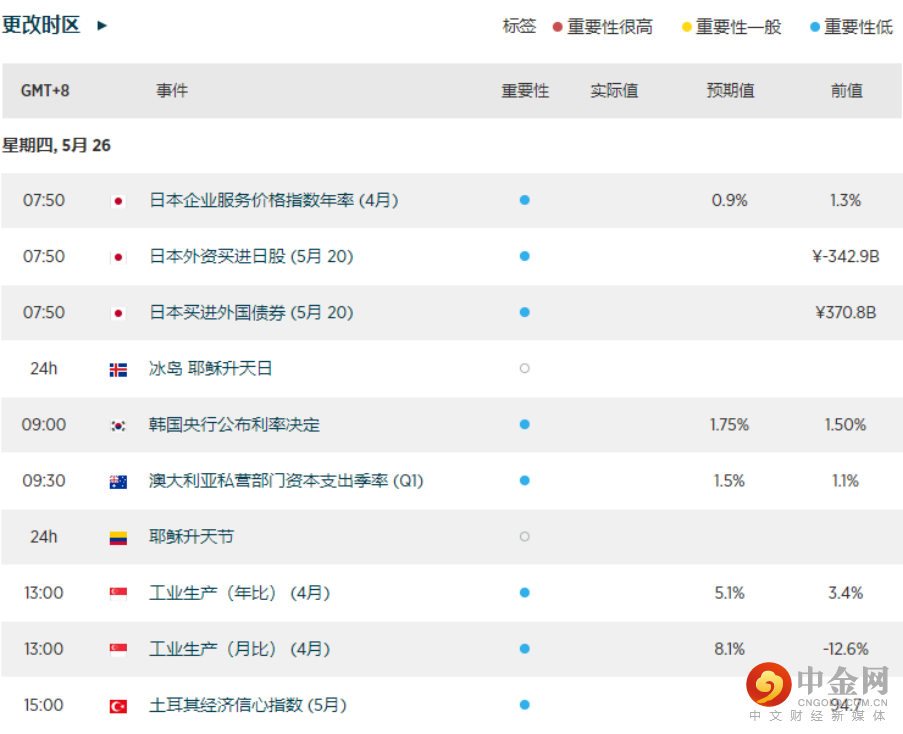 今日经济日历(标准时间+8小时)
