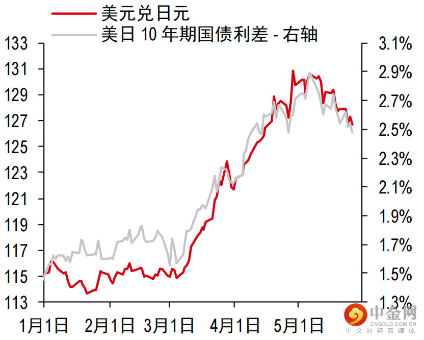 2.最近,美元兑日元一直跟随美日利差走势