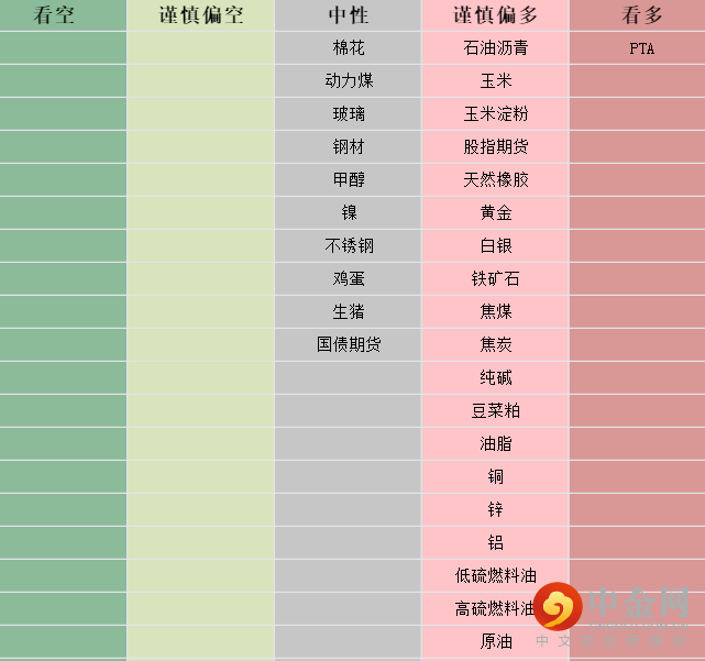 注:上图所有品种观点为主力合约的短期观点,具体以官网报告为准