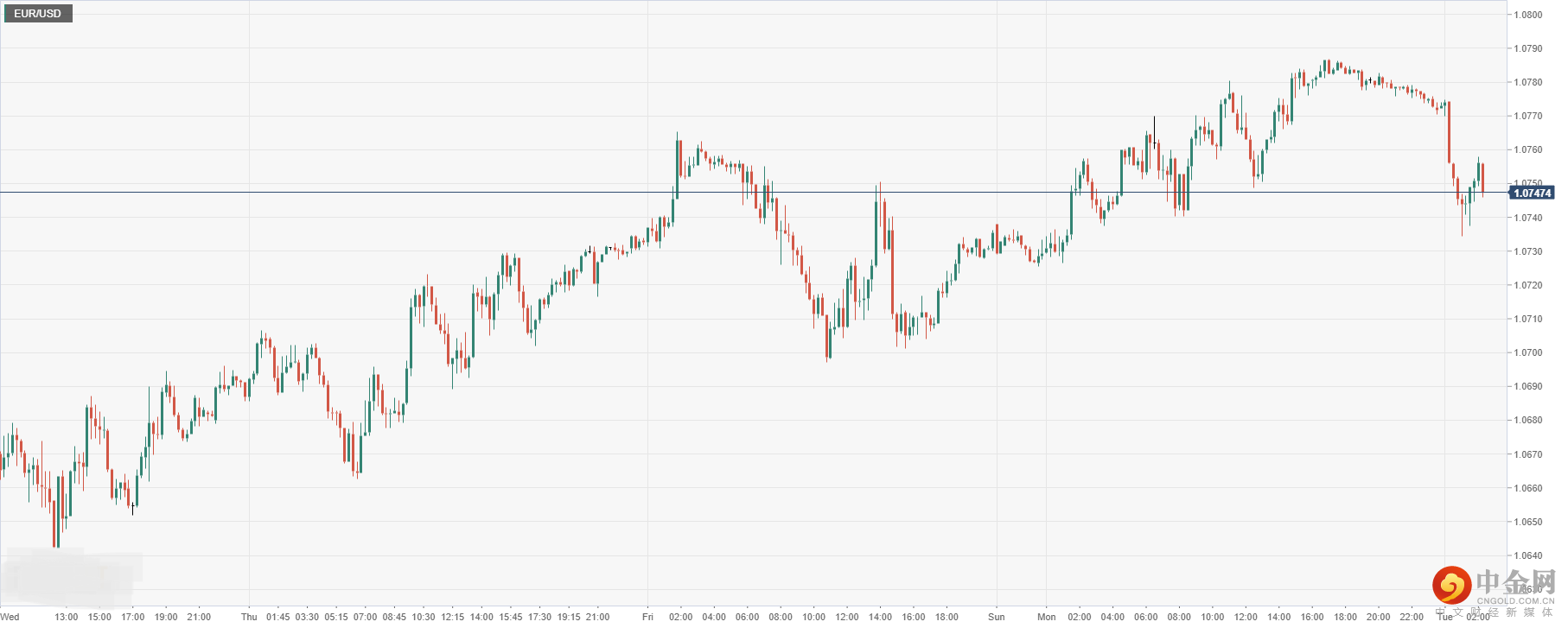 欧元兑美元周一收盘大幅冲高后,今日开盘涨0.31%至1.0747,由于通胀数据抑制欧元涨势,欧元上行支撑有限。