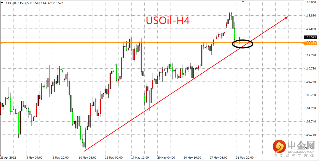 欧佩克+部长级会议将于本周四(6月2日)召开,但在会议召开前夕,却有消息显示欧佩克成员国正探讨暂停俄罗斯参与石油生产协议,该消息引发美原油隔夜自120.0美元附近急跌5%至114美元附近,回吐周一以来油价的全部涨幅。