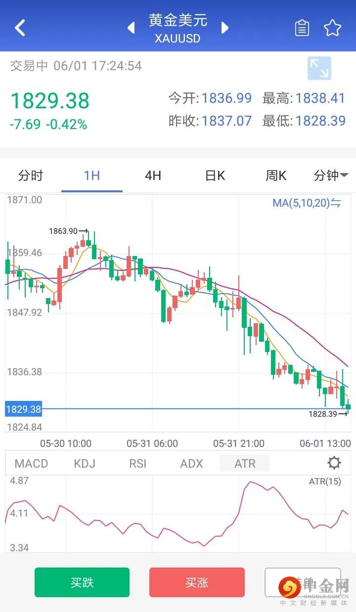 非农周周初,稍有缓解的美联储加息预期,再次被“年内接下来每次会议都加息50个基点”的鹰派言论打破。美元再受追捧,美指止跌回升,一度攀升至102关口上,结束了日线三连跌。周二,现货黄金结束两连阳,美盘时段扩大跌幅,失守1840美元关口,最终收跌1.01%。本交易日欧市早盘,美元指数保持坚挺,现货黄金继续承压,触及5月19日以来新低至1828.39美元/盎司。本交易日投资者将聚焦素有“小非农”之称的美国ADP就业数据,预计将引发市场重大行情,若美国ADP数据强于预期,美元有望进一步走强,从而打击金价和其它主要非美货币。
