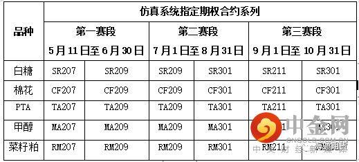 此次大赛交易评比范围为仿真系统中以指定期货合约为标的物的期权合约,指定期货合约详见下表: